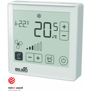 Raumsensor / Raumbediengerät Temperatur aktiv, NFC, 0...5 V, 0...10 V, 2...10 V, 4...20 mA, MP-Bus, ePaper-Touch-Display, PC, weiss, RAL 9003